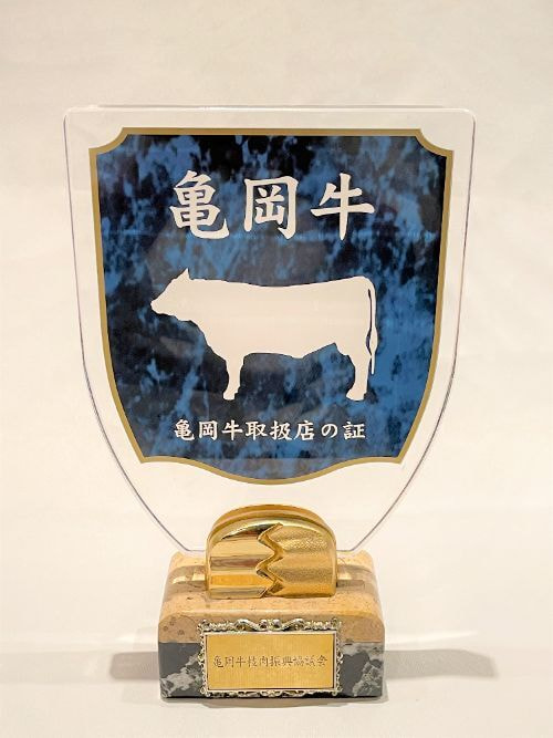 亀岡牛枝肉振興協議会では、安全な亀岡牛を皆さんに安心してご賞味いただけるよう、取扱店には認定の証明として、認定証(下記画像)を展示しています。商品には亀岡牛の証明シールを発行し、皆様のお手元に届く際に添付されるようにしております。生産の履歴もはっきりしており、個体識別番号により検索することで、確認していただくことが可能です。