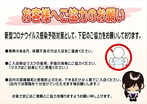 当店ではコロナ感染対策を徹底して営業しております。